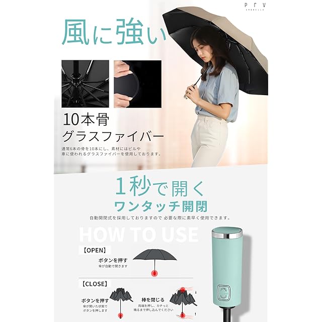 ✅【 1秒で開く! ワンタッチ自動開閉 】Prvの折りたたみ傘は自動開閉機能を備えていますので、片手でワンタッチ操作できます。持ち手についているボタンを押すだけで傘の開閉ができますので車やバスなどの乗り降りの際や、荷物で片手が塞がっているときに非常に便利です。また持ち手も大きい設計ですので持ちやすい作りになっております。