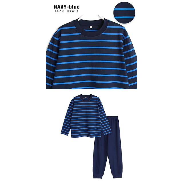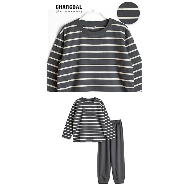 パジャマ ボーイズ 綿100% Tシャツ素材 柔らかい 快適 上下セット 長袖 シンプル ボーダー 春 夏 秋 通年 ベージュ 通気性サイズ