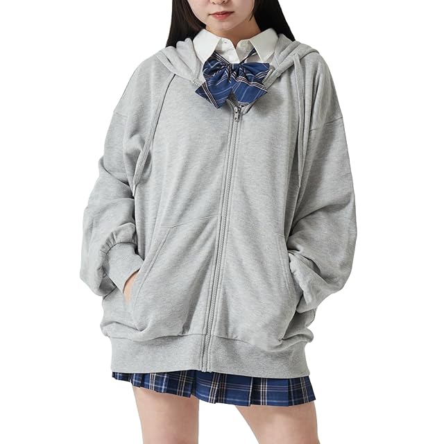 [ウィゴー] BIG パーカー レディース ジップパーカー ゆったり 大きいサイズ スウェット 学生 高校生 大人 長袖 運動 ダンス 通学 通勤 女子 服 秋服 冬服 春服 春 夏 秋 冬 プレゼント レディース F 杢グレー