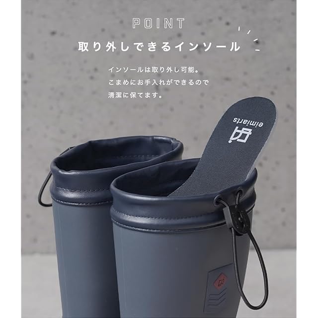 [アリサナ] レインブーツ 折りたたみ キッズ 男の子 チャコールグレーxネイビー 20cm