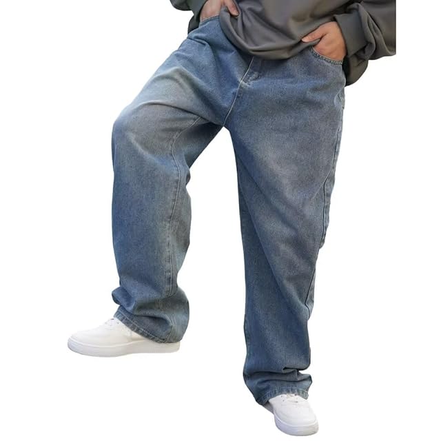 [Fuyumoe] ジーンズ メンズ ワイド デニムパンツ メンズ ズボン ワイド ジーパン 大きいサイズ ゆったり ルーズ イージー (ブルー XL)