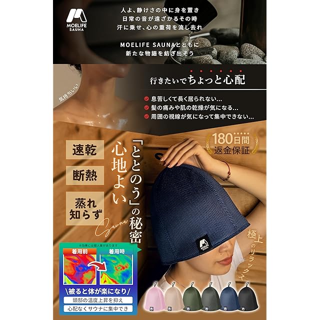 【サウナ時間を大切に】サウナハットは頭部をしっかり守り、髪の乾燥やパサつきを抑えるだけでなく、熱波から頭皮を保護します。頭部の温度上昇を和らげることで、サウナの暑さが苦手な方ものぼせる心配なく、長時間リラックスしてサウナを楽しむことができます