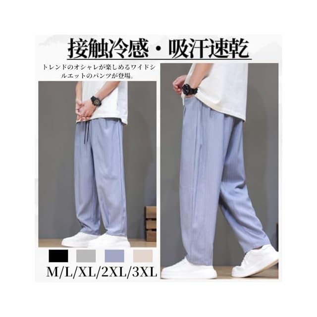 [GUTHONG] ワイドパンツ メンズ ズボン 夏服 ストレートパンツ サルエルパンツ 大きいサイズ カジュアル 無地 ストライプ イージーパンツ ゆったり 通気 人気 快適 ゆったり ロング丈 ボトムス メンズ 春 夏 秋 blue M