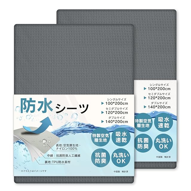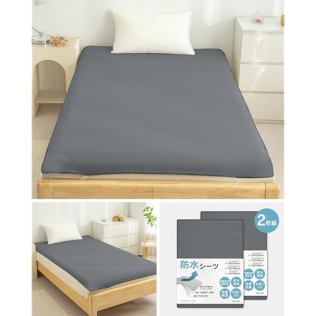 BLACK BADGER 防水シーツ シングル 【2枚セット・空気層生地】おねしょシーツ 敷パッド 介護用対応 防臭 抗菌 防ダニ 丸洗い可 四隅ゴム付き 防水パッド おねしょパッド 失禁対策 (ダックグレー・100×200cm)