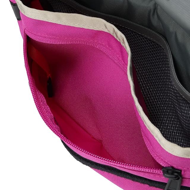 開閉しやすい面ファスナー式フラップ/柔らかいパッド入りのバックパネル/内部にメッシュポケット/フロントポケット/キーホルダーループ/リフレクター