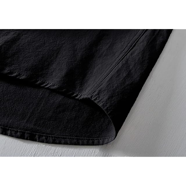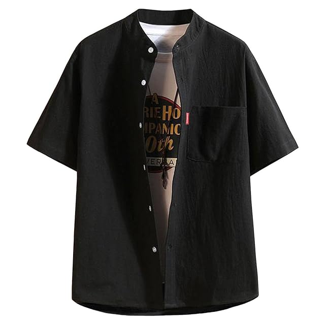 [EASTEMPO] シャツ メンズ 半袖 夏 綿麻 カジュアル ビジネス 無地 おしゃれ ゆったり 薄手 大きいサイズ (JP, アルファベット, 2XL, ブラック)