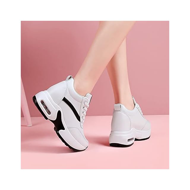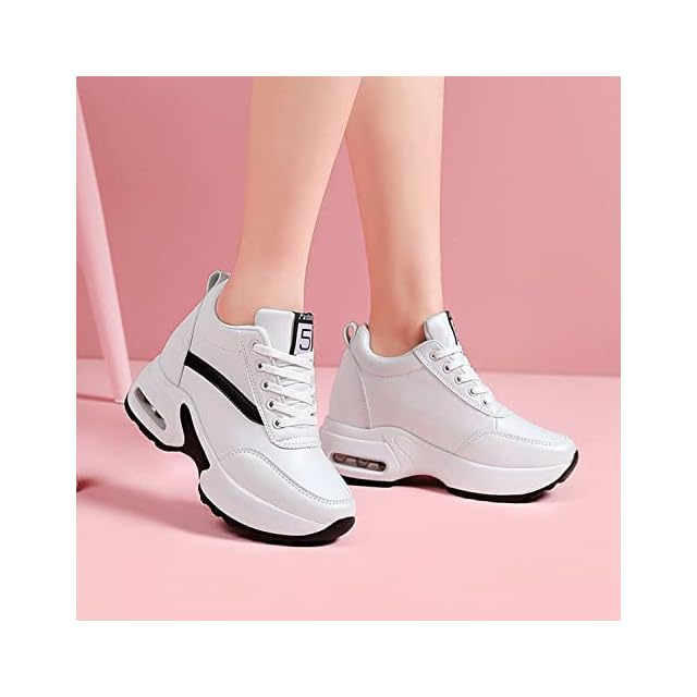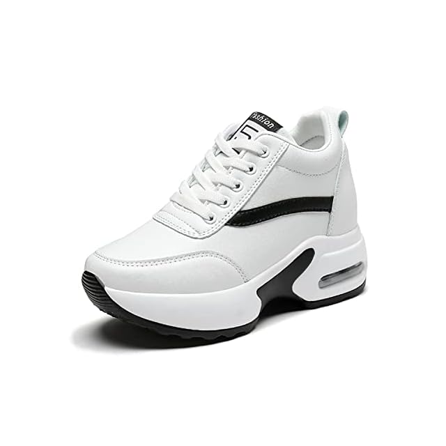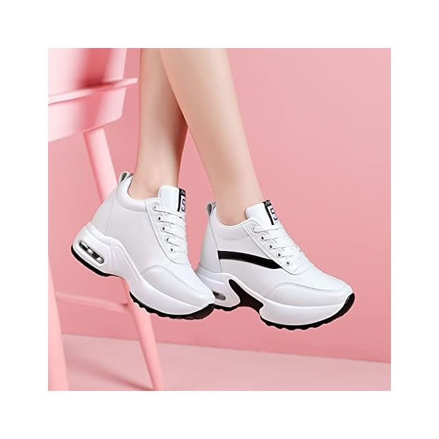 [Fainyearn] インヒールスニーカー レディース 厚底スニーカー レディーススニーカー 厚底 美脚 シークレットシューズ 厚底シューズ レースアップ 8cm厚底 ヒールアップ 軽量 身長アップホワイト 22.0cm