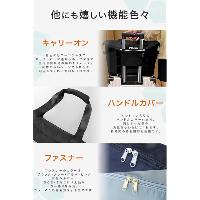 ✅【キャリーオンバッグ】キャリーオンバッグとしてキャリーバッグ、スーツケースに固定可能。バッグ背面にはスーツケース固定用の加工がされており、簡単にスーツケースに設置可能。キャリーケースからズレ落ちる心配がないので、旅行時の移動がもっと楽になる!また機内持ち込み可能なサイズなので、バッグ1つで旅行行く方にもおすすめ。
