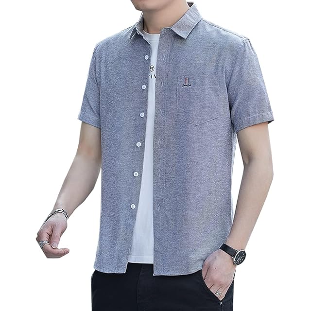 [Aaronlive] メンズ 夏用 シャツ 夏服 半袖 カジュアル 無地 シャツ 柔らかい かっこいい ワイシャツ 快適な 軽い レギュラーフィット グレー M