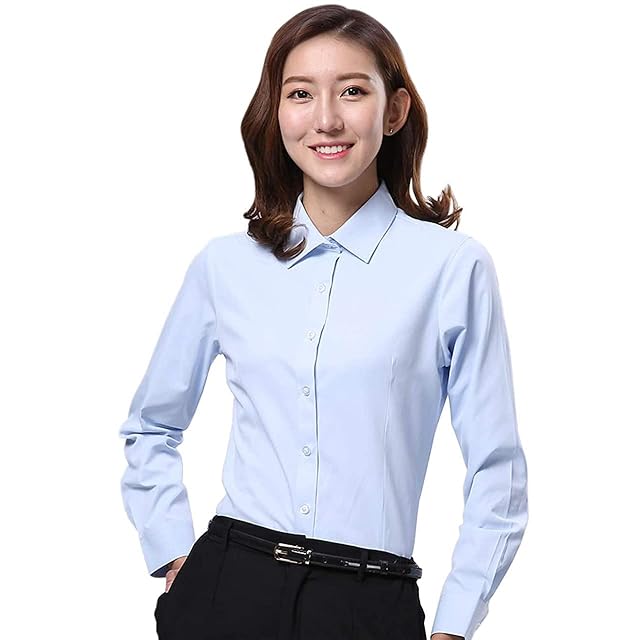 [SIPERLARI] ブラウス シャツ レディース 通勤 長袖 就活 オフィス シャツ 可愛い 形態安定 カジュアル おしゃれ 着痩せ 黒 白 ビジネス レギュラー シャツ スキッパーシャツ(ライトブルー 38)