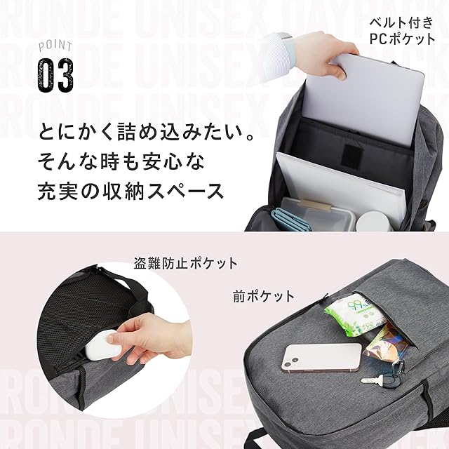 [RONDE] リュック 人気 通勤 通学 軽量 約500g 撥水 大容量 15L おしゃれ 旅行 キャリーオン PCポケット タブレット バックパック お出かけ 黒 グレー ネイビー 迷彩 カモフラージュ シンプル レディース