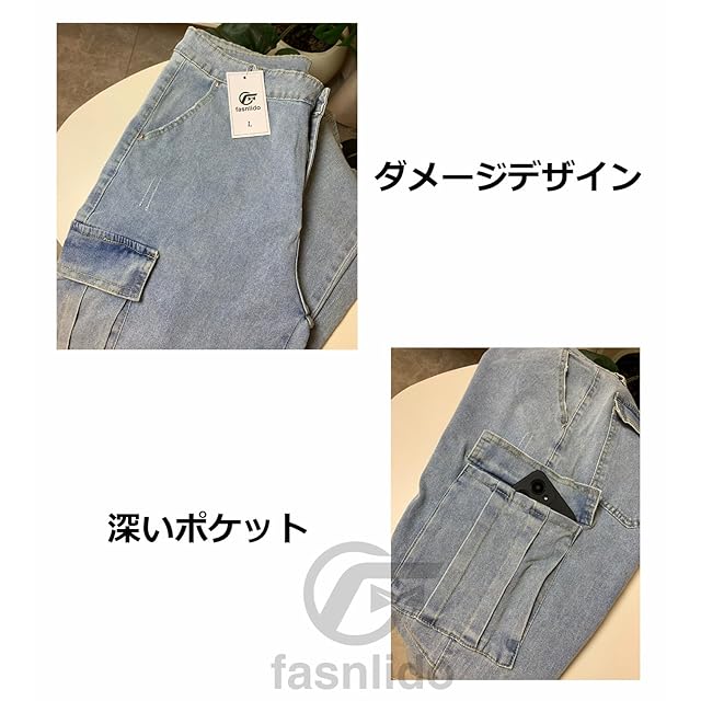 [F fasnlido] デニムパンツ メンズ スキニージーンズ カーゴパンツ ストレッチ 大きいサイズ M-3XL ボタン付き コットン 春夏秋 カッコいい (ブルーA, L)