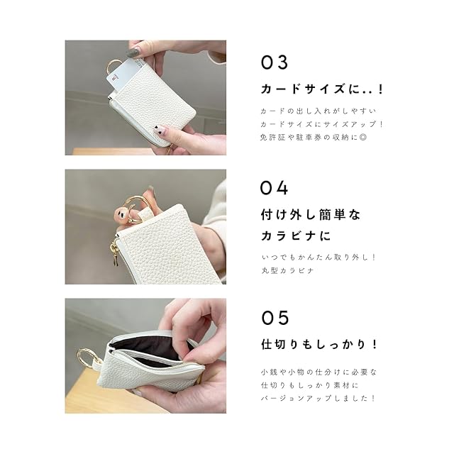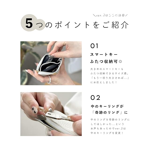 スマートキーケース 奇跡のリング キーケース カードケース 小銭入れ 小物入れ キーレスケース ミニポーチ レディース メンズ カラビナ コンパクト 撥水 鍵 車 シンプル (ノーマルリング:チャイベージュ)