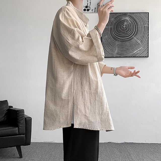 [YEOREO] シャツ チャイナ服 メンズ シャツ メンズ 半袖 無地 七分袖 綿麻 中華服 トップス カジュアル 茶師服 演舞 ゆったり シンプル 中華風 チャイナボタン 大きいサイズ 唐装 夏春服 カンフー服 太極拳服 武術 男女兼用-xing-L