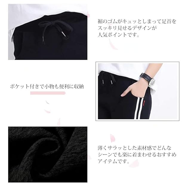 ★ 「仕様」:ウエストは腹部を締め付けない伸縮性のある総ゴム仕様の紐付きなので、ご自身のウエストラインに調節可能です。ポケット付きで小物も便利に収納、裾リブによって下半身を細身のシルエットにすることでコーディネートをすっきりさせます。