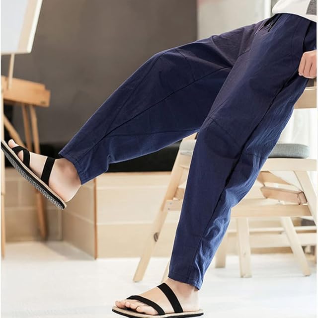 [Platilive] ズボン メンズ リネン サルエル メンズ オーバーサイズ ワイドパンツ リラックスパンツ 大きいサイズ ゆったりボトムス 調整紐 ズボン ウエストゴム パンツnavy 2XL