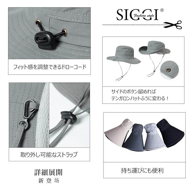(シッギ)Siggi サファリハット メッシュ アドベンチャーハット 折りたたみ ブーニーハット おしゃれ フィッシングハット ミリタリーハット 日よけ帽子 ハット 帽子 メンズ 取り外す あご紐 春夏秋 つば広 uv アウトドア 自転車 登山 釣り ゴルフ ハイキング 紫外線対策 (カーキ S/Mサイズ)