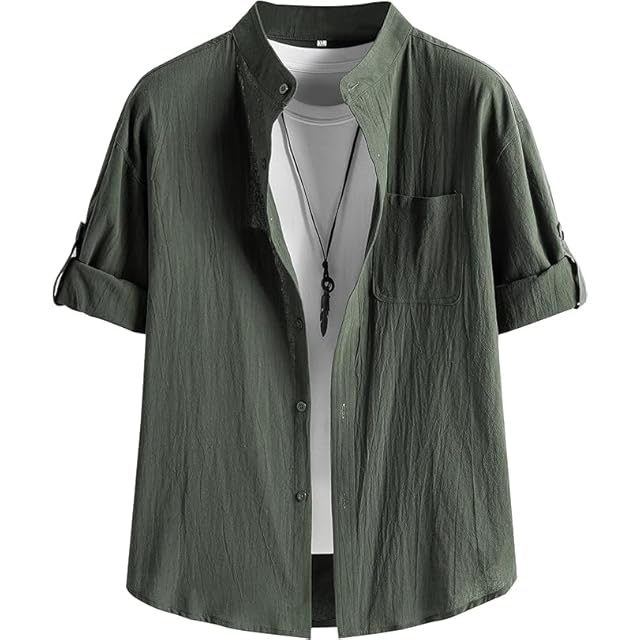 [Anzn] 夏服 シャツ メンズ 七分袖 半袖 ファッション ボタンアップ シャツ 大きいサイズ メンズ 無地 ワイシャツ 人気-lv-3XL