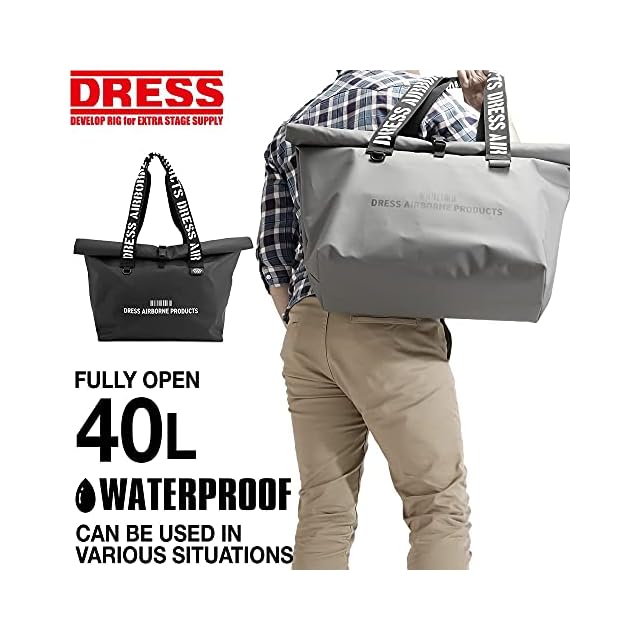 ドレス(DRESS) 防水トートバッグ 40L/GRY 釣り 防災 災害 キャンプ 防水 大型収納 撥水 高機能 ウェーダー 胴長 アウトドア 焚き火台 薪バッグ カバン ビッグバッグ