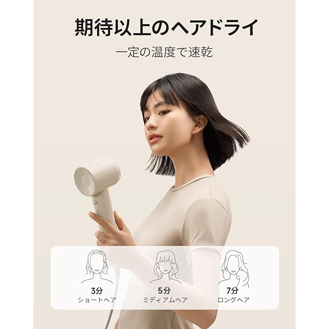 【3倍速乾ヘアドライヤー】SE Liteは、自社開発モーターのパワーを十分に発揮させるため、SE Liteは100,000超高速回転の空気圧倍増効果を多用し、内部の空間関係を再構築し、空気抵抗を少なくしてエアダクトの送風効果を大幅に高めています。SE Liteは、19m/秒のスムーズな風を生み出し、髪の長さによっては最短3分で乾かすことができます。