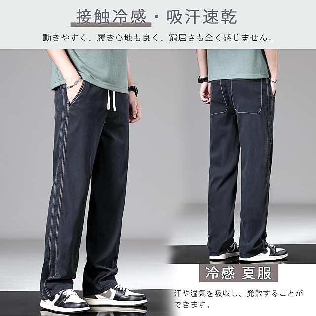 接触冷感・吸汗速乾・ストレッチ性に優れたメンズワイドテーパードパンツ。サラッとした滑らかな肌触りで暑い日でも快適に過ごせて、ダボつきすぎず、春夏秋にもさわやかに着られます。