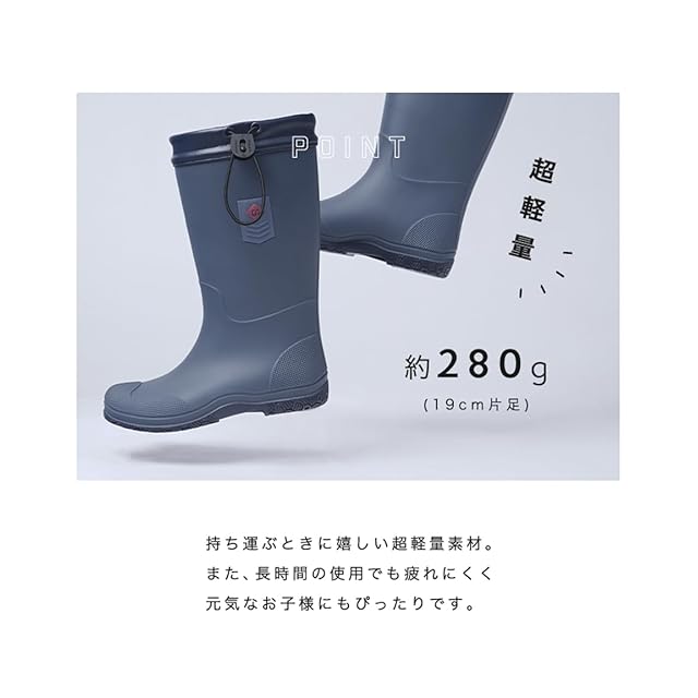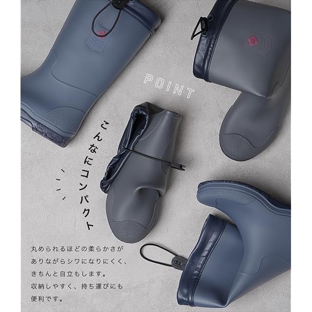 [アリサナ] レインブーツ 折りたたみ キッズ 男の子 チャコールグレーxネイビー 21cm