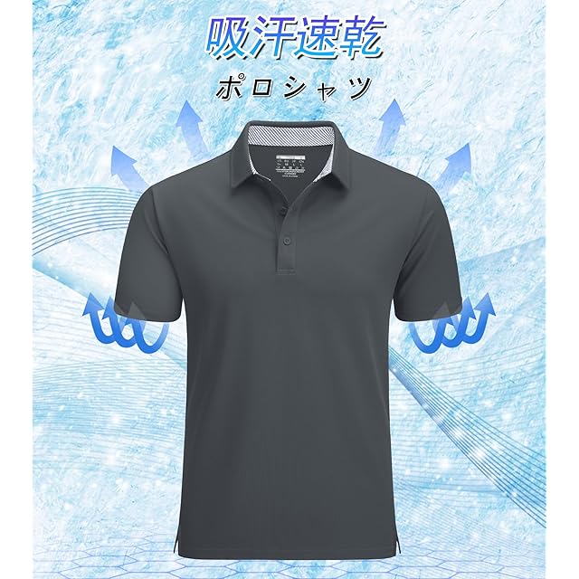 [KEFITEVD] ゴルフウェア メンズ ポロシャツ ビジネス 綿 襟付きシャツ ボタンダウン ポロ 大きいサイズ トップス ゆったり 夏服 tシャツ 吸汗速乾 ダークグレー M