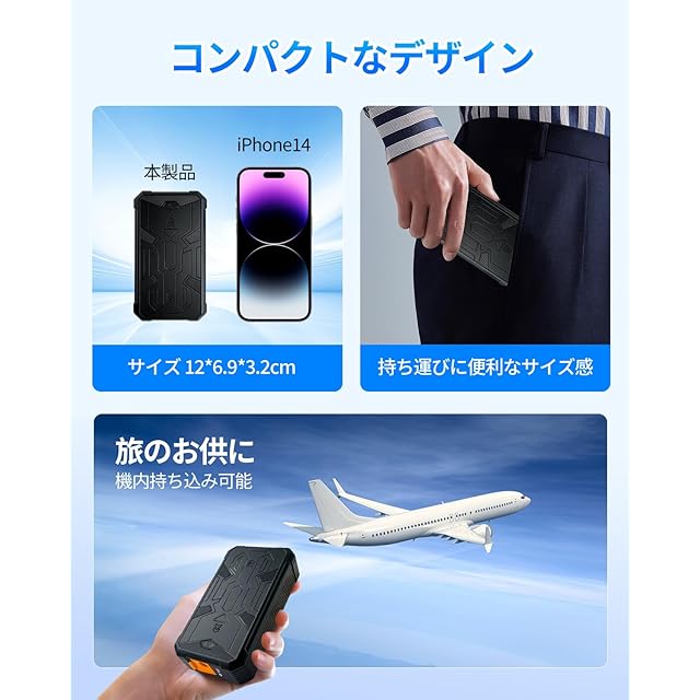 【液晶ディスプレイ搭載&機内持ち込み可能】液晶ディスプレイ搭載により、充電具合や出力電圧が一目で分かります。30Vバッテリー大きさは約12*6.9*3.2cmです。約398g軽量で、カバンやポケットに入れて、持ち歩きにも負担がありません。機内へ持ち込みOKなので、外出時や旅行時用の予備に活躍してくれます。