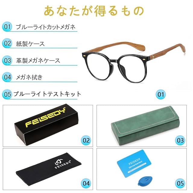 【プレゼントにも最適】セット内容:メガネ本体 × 1、高級メガネスケース × 1、ハードケース × 1、メガネ拭き × 1、ブルーライト 付属品× 1、ブルーライト試験用紙 × 1が付属されています。ご家族やお友達、恋人へのプレゼントとしてもオススメです!