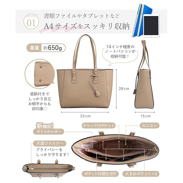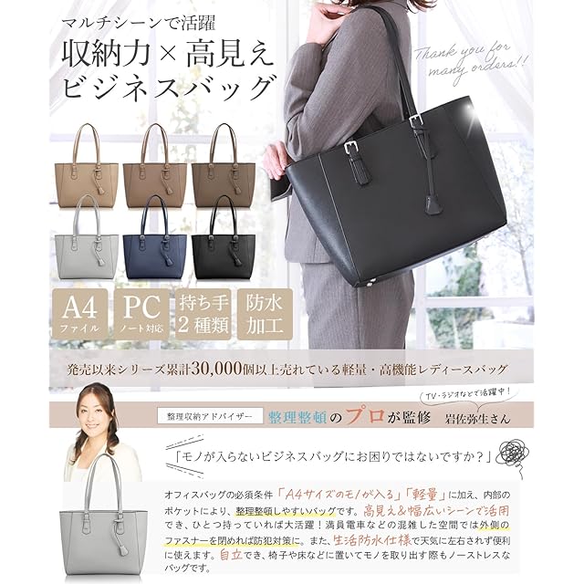 [アンコール] ビジネスバッグ 通勤バッグ 【収納のプロ監修 美フォルム梱包】 レディース トートバッグ 通勤 かばん 撥水 A4 自立 大容量 肩掛け 就活 リクルート 面接 バック (カリブネイビー)