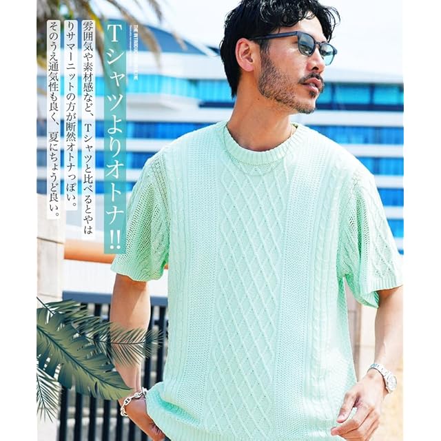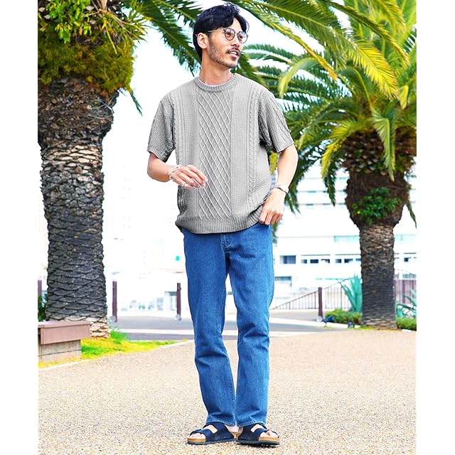 [JIGGYS SHOP] ジギーズショップ サマーアランニット|XL Aライトグレー 春服 夏服 サマーセーター トップス 薄手 V U クルー ネック 丸首 無地 ボーダー 半袖 サーフ系 父の日 ドライ シンプル 大人 きれいめ カジュアル