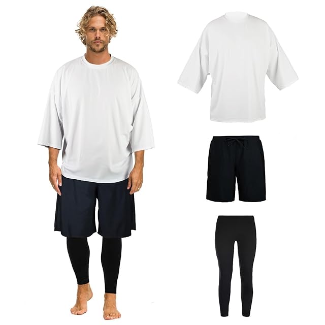 【ARMOTO】ラッシュガード メンズ 水着 オーバーサイズTシャツ レギンス サーフパンツ フィットネス 三点セット[UVカット UPF50+・吸汗速乾] 水泳 水陸両用 大きいサイズ
