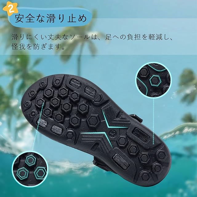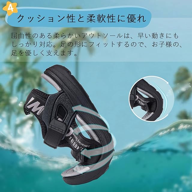 [FFIBU] サンダル 男の子 子供 キッズサンダル スポーツサンダル 水陸両用 子供用サンダル ビーチサンダル 子ども ジュニア 履きやすい おしゃれ 滑り止め 黒い 19.5cm