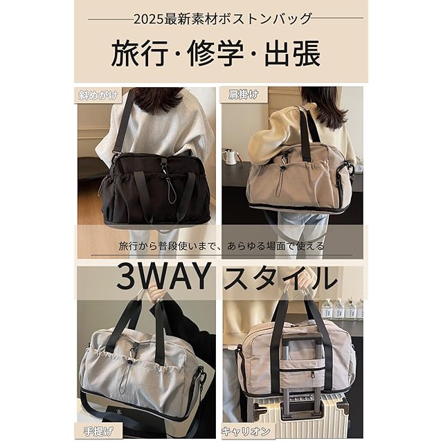 【多彩なシーンで活躍】 旅行はもちろん、トラブルや出張、ジム用のスポーツバッグ、修学旅行、マザーズバッグとしても最適です。撥水加工ナイロン素材なので、大切な品物を雨や汚れから守ります。