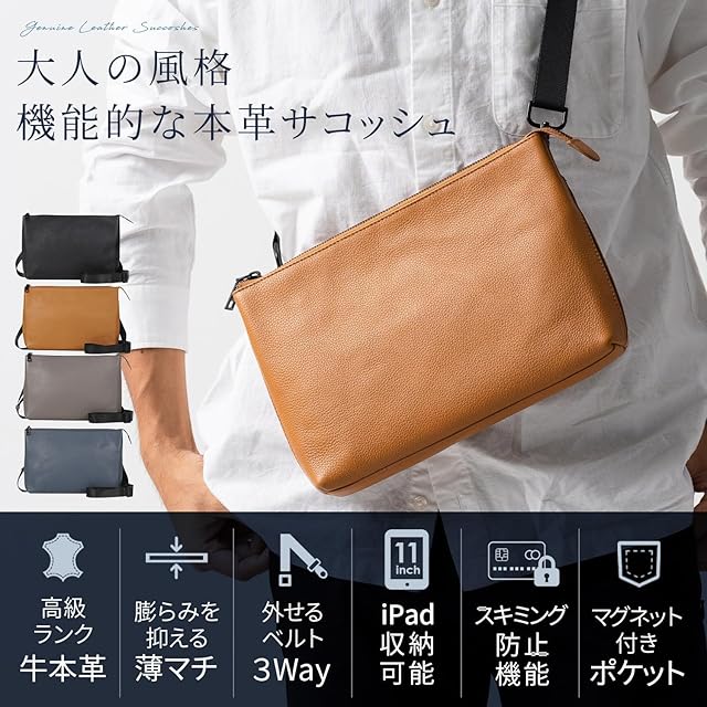 ✅【マチはこだわりの3.5cm。サコッシュの薄マチショルダーとしてベストなサイズ感】サコッシュで財布やスマホ、小物をいれすぎで膨らんでしまった経験はありませんか?通常のサコッシュだと荷物をいれると膨らんでダサくなってしまいますが、あえてマチを3.5cmとることで膨らみを抑え財布やスマホタブレットなどをいれてもスマートに魅せるサイズ感を追求しました。 長財布はもちろん、タブレットは最大iPad Pro 11インチまでが収納可能で財布やiPhoneなどのスマホをいれても膨らみをおさえスマートに使用できます。