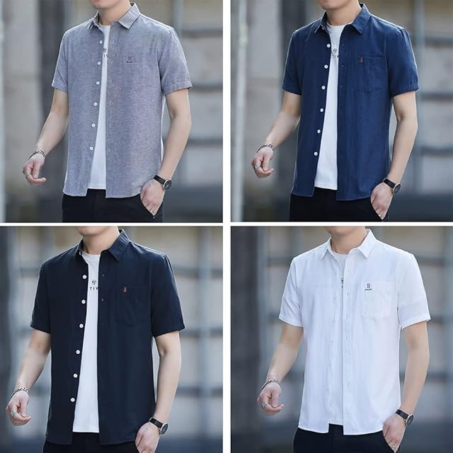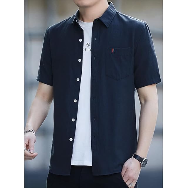 [Aaronlive] シャツ メンズ 夏服 半袖 カジュアル 無地 シャツ 柔らかい かっこいい ワイシャツ 快適な 軽い レギュラーフィット メンズ シャツblack XL, #A066-ブラック