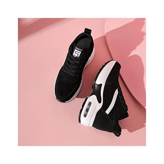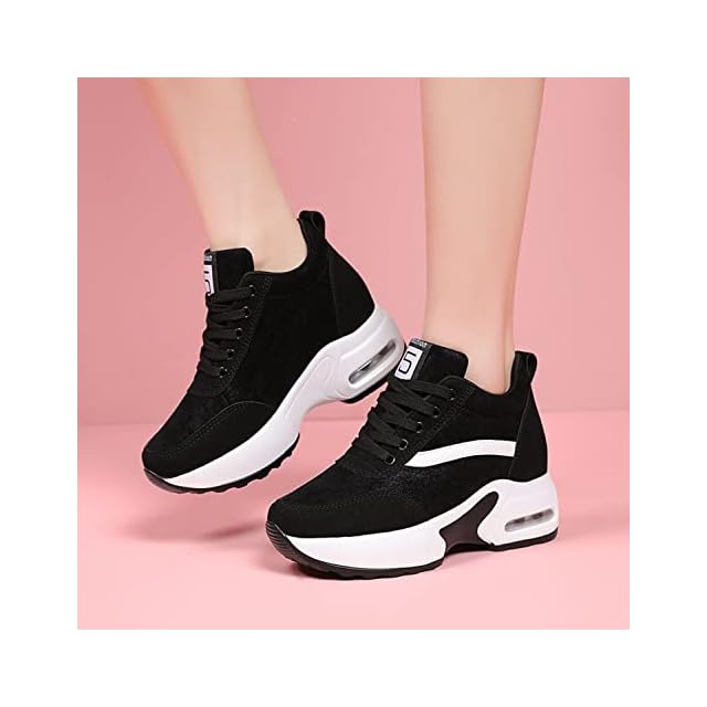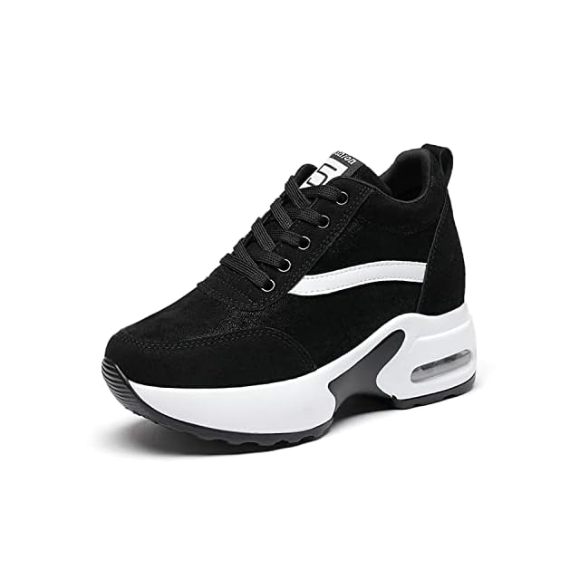 [Fainyearn] インヒールスニーカー レディース 厚底スニーカー レディーススニーカー 厚底 美脚 シークレットシューズ 厚底シューズ レースアップ 8cm厚底 ヒールアップ 軽量 身長アップ ブラック 22.5cm