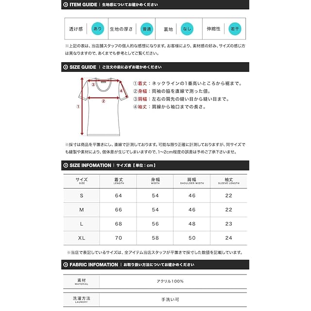 (着丈/身幅/肩幅/袖丈) 【Sサイズ】64/54/46/22cm 【Mサイズ】66/54/46/22cm 【Lサイズ】68/56/48/23cm 【XLサイズ】70/58/50/24cm