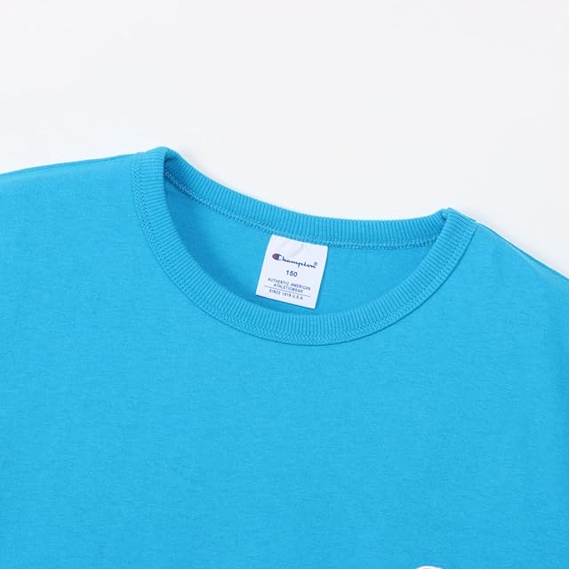 [チャンピオン] シャツワンピ キッズ 半袖 丸首 綿100% COTTON USA バインダーネック ワンポイントロゴ刺繍 ショートスリーブワンピースドレス ベーシック CK-Z331/CK-T305 アクアブルー 160