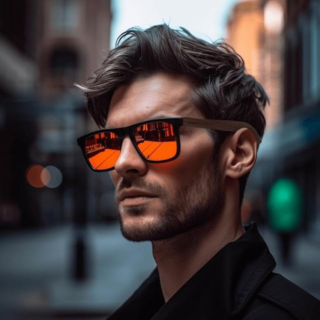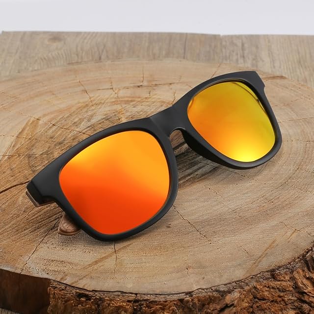 [WOODONLY] 木製ヴィンテージ偏光サングラス - UV400 保護ハンドメイドサングラス メンズ&レディースにうってつけなギフトです (くるみの木+オレンジ)