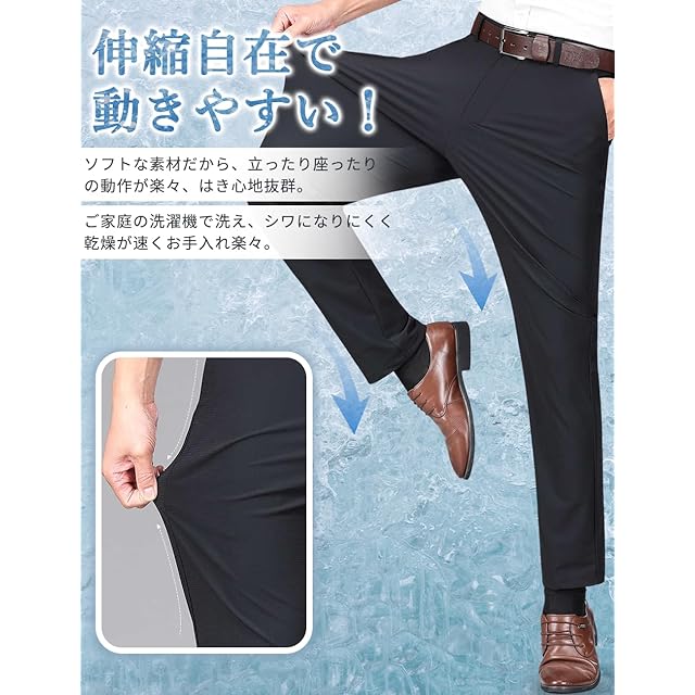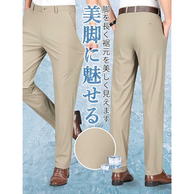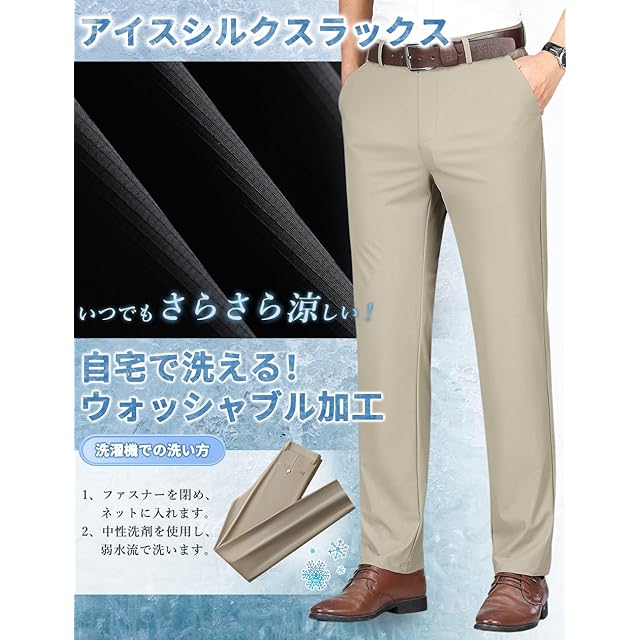 [VICALLED] 接触冷感 スラックス メンズ UVカット 涼しい ボトムズ ストレッチ スーツパンツ 吸水速乾 ウォッシャブル ゴルフパンツ 前開き 夏 ビジネス ノータック 夏服 スリム