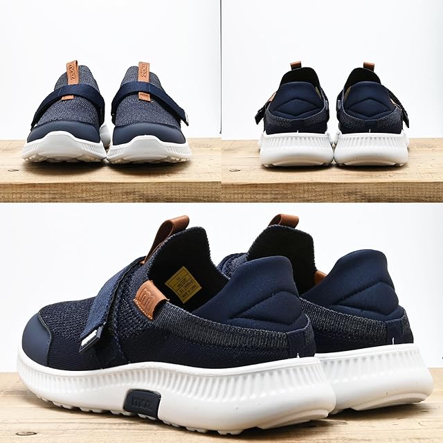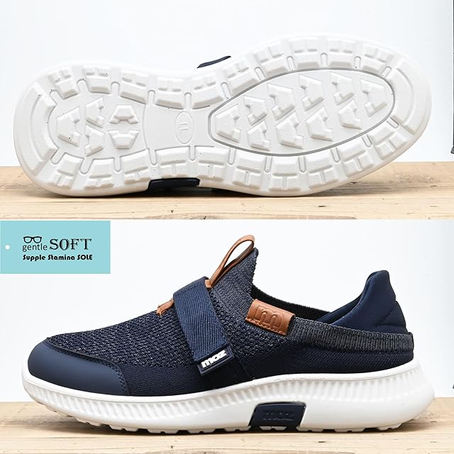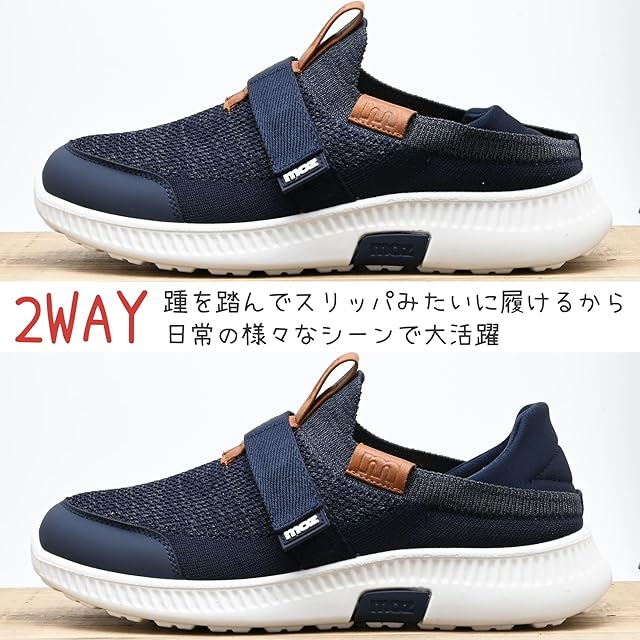 [モズ] スリッポン メンズ 2way 踵を踏める 高屈曲 低反発 ソフトクッションソール ニット マジックバンド (5220ネイビー, LL)