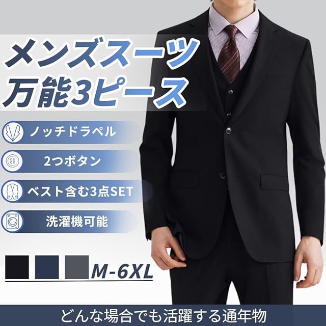 [YAYOKYA] スーツ メンズ 3点 上下セット ビジネススーツ 2つボタン 就職 フォーマル 礼服 結婚式 喪服 無地 大きいサイズ スリム オールシーズン対応 無地 M-6XL