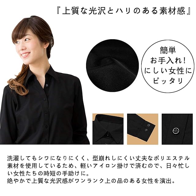 [SIPERLARI] ブラウス シャツ レディース 通勤 長袖 就活 オフィス シャツ 可愛い 形態安定 カジュアル おしゃれ 着痩せ 黒 白 ビジネス レギュラー シャツ スキッパーシャツ(ブラック 35)