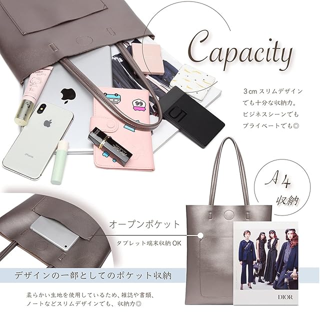 無駄のないシンプルなデザインが魅力♪①書類を入れるのにぴったりのサイズ感! ②レザータッチソフトPUレザーを使用、軽くて丈夫◎③オンではサブバッグとしておしゃに持つのもおすすめです♪