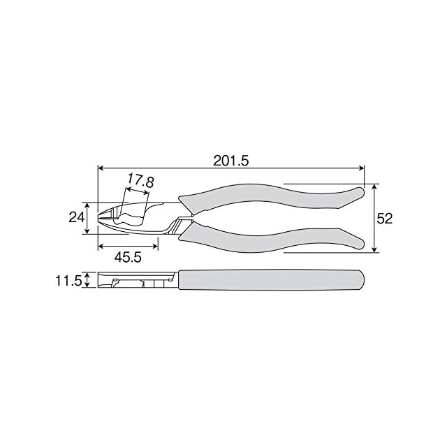 【切断能力】銅線:4.0mmφ、銅より線:IV14mm^2、VVF線:2.0mmφ×3芯、鉄バインド線:2.0mmφ【硬度HRC】先端部:58【重量】245【全長】201.5mm【用途】電線の曲げ・切断、電気工事、電子機器や精密機械の組み立て・修理、電子工作、プラモデル・模型・アクセサリーの製作、ワイヤーワーク、釣り針の製作や修理