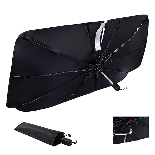 商品名:konciwa【2024新版&曲がる中棒】 サンシェード 車 フロント 傘型 車用サンシェード 折り畳み式 強力な10本骨逆折り式 車用パラソル 自動車用サンシェード バックミラー開き口 遮光 遮熱 取り付け簡単 収納便利 レザーバック付き フロントガラス 紫外線対策 遮光性よい 車中泊 仮眠 暑さ対策… (M-S(135*75cm幅の調整可能))