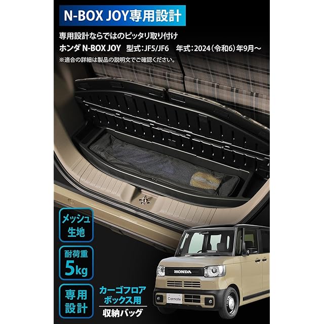 ✅ホンダN-BOX JOY専用の収納バッグ✅ ホンダ N-BOX JOY 年式:2024(令和6)年9月~のカーゴフロアボックスに収納できるよう設計・デザインした収納バッグです。 【適合車種】 ホンダ N-BOX JOY 型式:JF5/JF6 年式:2024(令和6)年9月~ ※調査日(2024年9月)以降の仕様変更車には適合しない場合があります。 ・本製品は、カーゴフロアボックスに設置する製品です。 ・本製品に防汚、防水、撥水機能はありません。