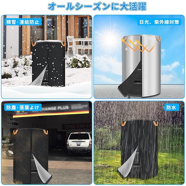 【紫外線防止&オールシーズン対応】高温に強い100%ポリエステル生地と裏面に多層コーティング工芸を施したカバーで、日焼け止め機能性・防塵性などにも優れ、紫外線によるタイヤのヒビ割れ・老化・劣化を防ぎ、長寿命を実現します。夏の強い日光、雨、雪、ほこり、摩擦などから全方面でタイヤをしっかり守ります!どんな天候にも対応できるのタイヤ保管カバーがおすすめです。