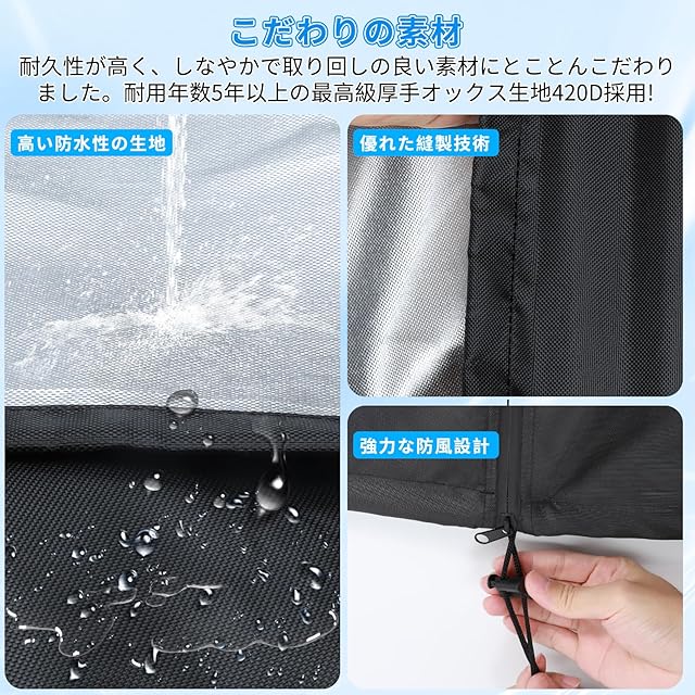 【防水性抜群&強防風設計】耐水圧10000paの防水性を持ちるタイヤ屋外カバーは、止水ファスナーと精密な二重縫い目加工で水の侵入を防ぎ、長期間使用しても破れづらいです。雨上がりや梅雨時期でもタイヤを乾燥した状態に保ちます。また、タイヤ保管袋の下部にコードとストッパーを装備し、調節可能でタイヤにぴったりフィット。強風でもズレにくく、しっかり固定されるので心配がありません。